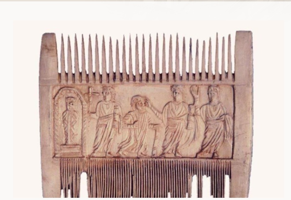 – نقش علي مشط من العاج يظهر بعض معجزات السيد المسيح (القرن 7م).
