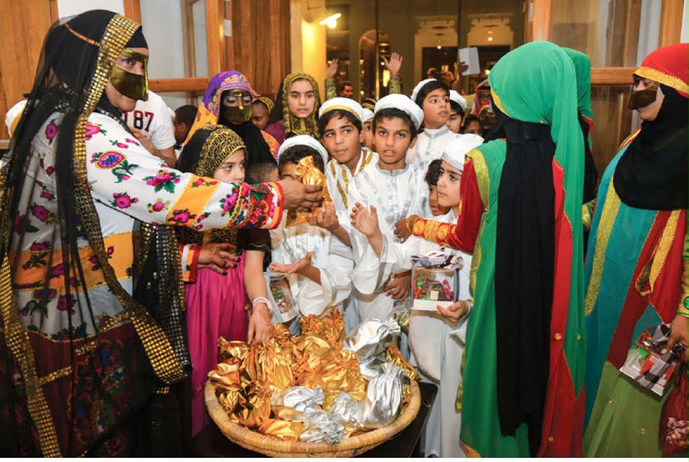 تجمع الإمارات بين الحداثة والتمسك بالجذور. تبدأ الاستعدادات بليلة “حق الليلة” في منتصف شعبان، حيث يطوف الأطفال لجمع الحلويات.