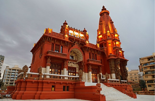 وأرد البارون أن يستقر بدولة مصر فقام فقام بالتخطيط لبناء قصرًا يليق بمكانته؛ لأنه كان وقتها أشهر مهندس في أوروبا، وأستمر بناء القصر لمدة 5 سنوات تقريبًا حتى أنتهى من بناءه، وكان البارون قد بنى القصر على الطراز الهندي؛ لإن عندما كان في بداية سن شبابه قد أصيب بمرض خطير، ولكن أنقذه الهنود، ولذلك فقرر أن يبني القصر على طرازهم، وأضاف البارون للقصر الكثير من اللوحات الغامضة.